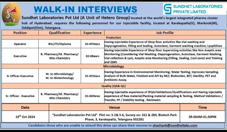 Sundhet Laboratories Pvt Ltd (A Unit of Hetero Group) located at the world’s largest...