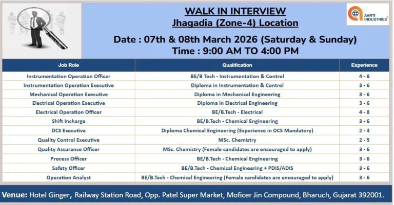 • Department: QC / QA / Safety / DCS / Instrumentation / Mechanical / Electrical / DCS