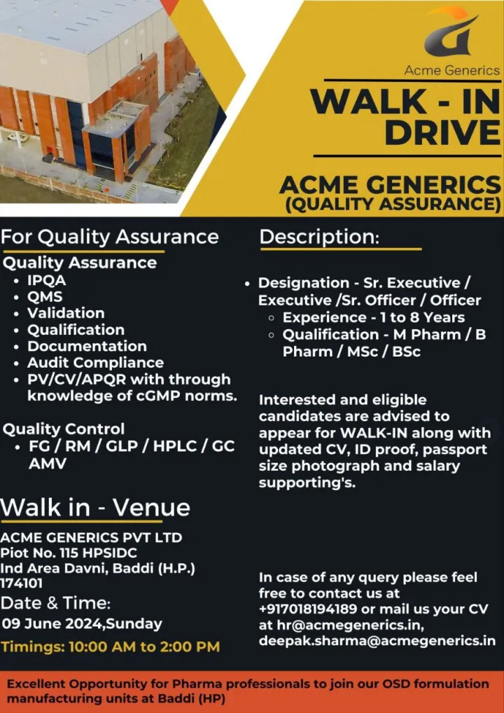 WALK-IN ACME GENERICS, BADDI