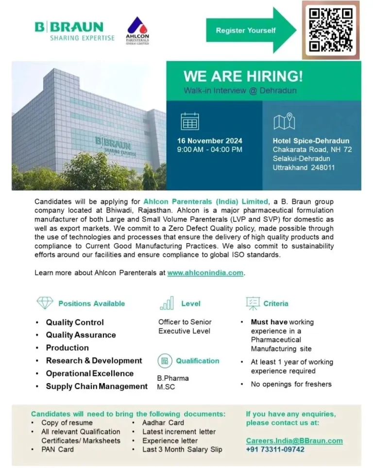 - Positions Available: Quality Control, Quality Assurance, Production, Research & Development, Operational Excellence, Supply Chain Management
