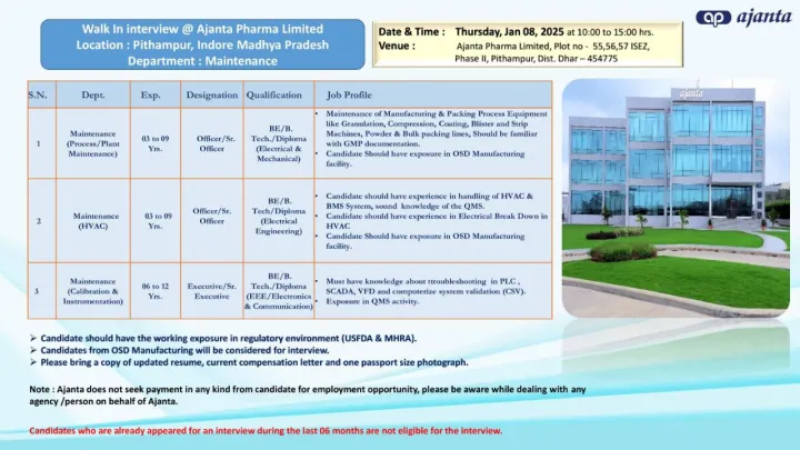 Madhya Pradesh - Work Location: Pithampur, Indore (MP)