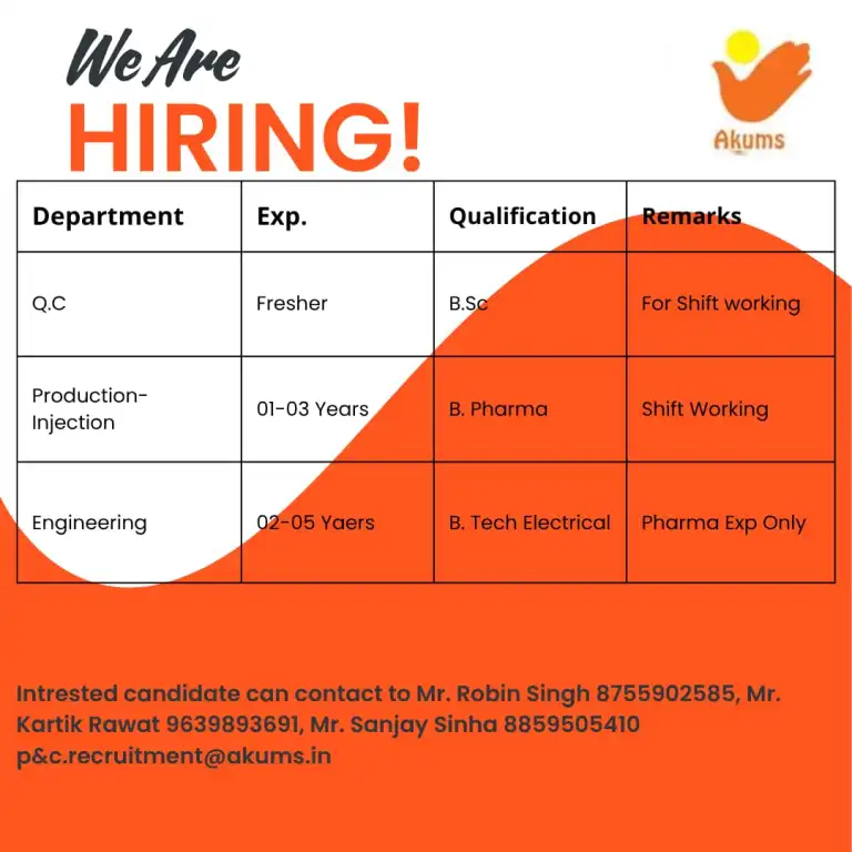 - Qualifications: B.Sc., B. Pharma, and B. Tech Electrical.