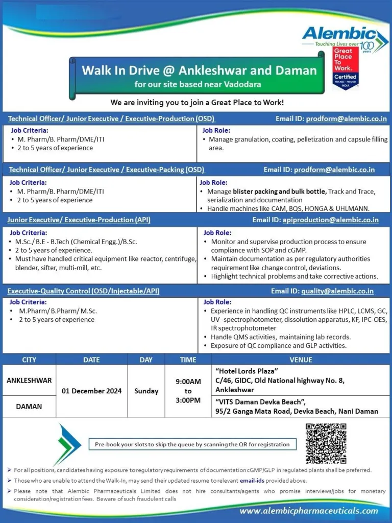 Please note that Alembic Pharmaceuticals Limited does not hire consultants/agents who promise interviews/jobs for monetary consideration/registration fees. Beware of such fraudulent calls.