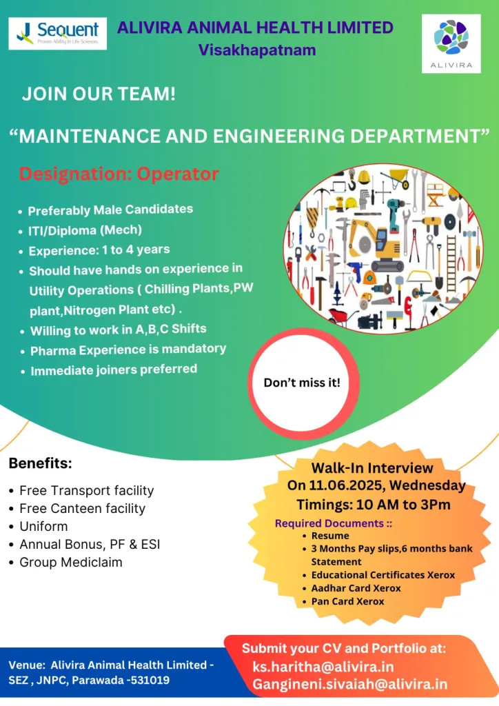 - Venue: Alivira Animal Health Limited -SEZ, JNPC, Parawada -531019