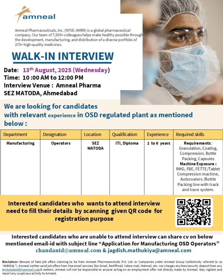 - Total Experience: 02 to 6 years (Pharma experience only)