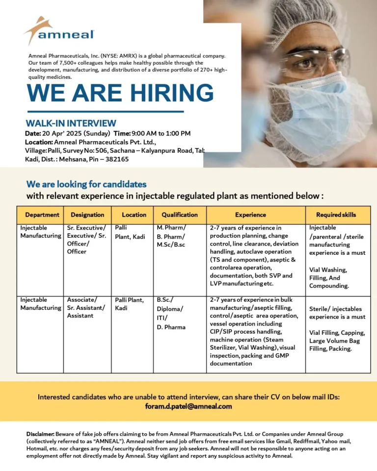 foram.d.patel@amneal.com with subject line “Application for Manufacturing department”