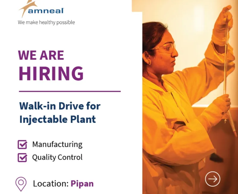 - Interview Venue: Amneal Pharmaceuticals Pvt. Ltd. Plot No: 161/1, Sanand Bavla Highway Road, Village: Pipan, Sanand, Ahmedabad, Gujarat – 382110
