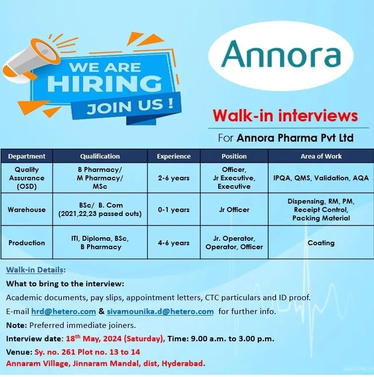 - INTERESTED CANDIDATES CAN EMAIL YOUR RESUME *WITH A SUBJECT LINE APPLICATION FOR QC Email: hrd@hetero.com sivamounika.d@hetero.com for further info.