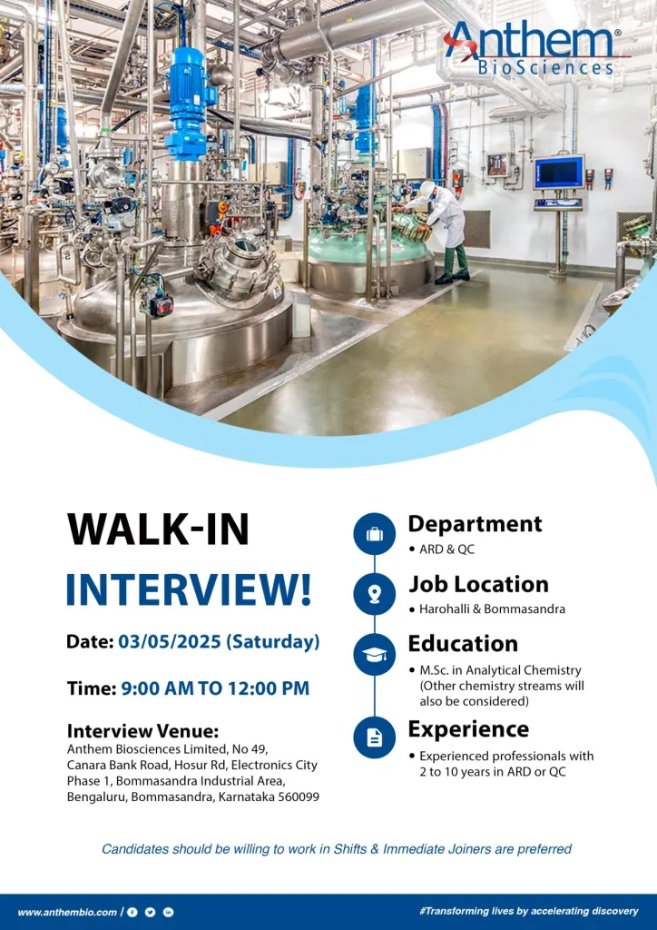 - Venue: Anthem Biosciences, Unit I, Bangalore