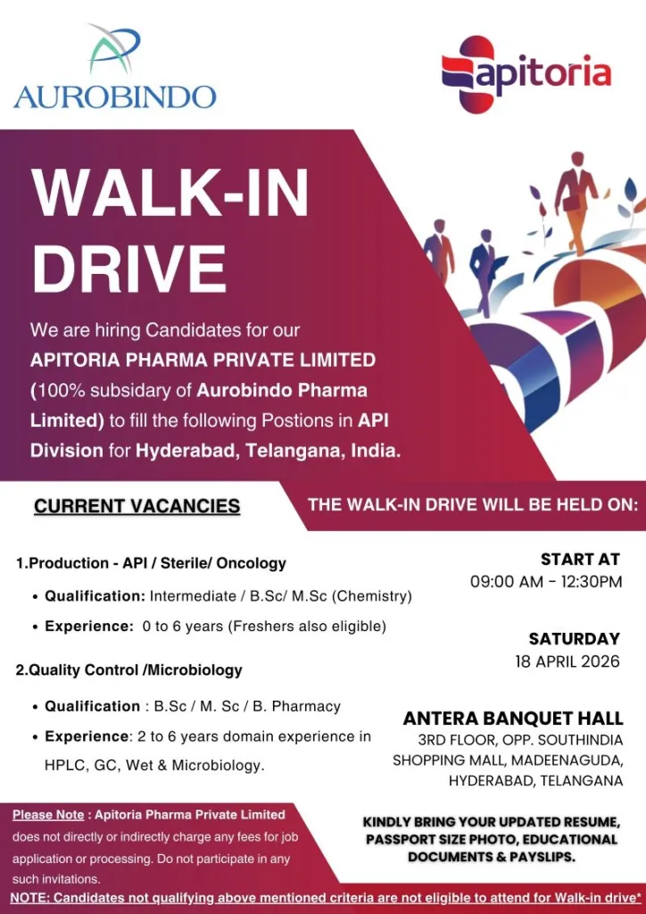 • Qualification: B.Sc/M.Sc / B.Pharmacy