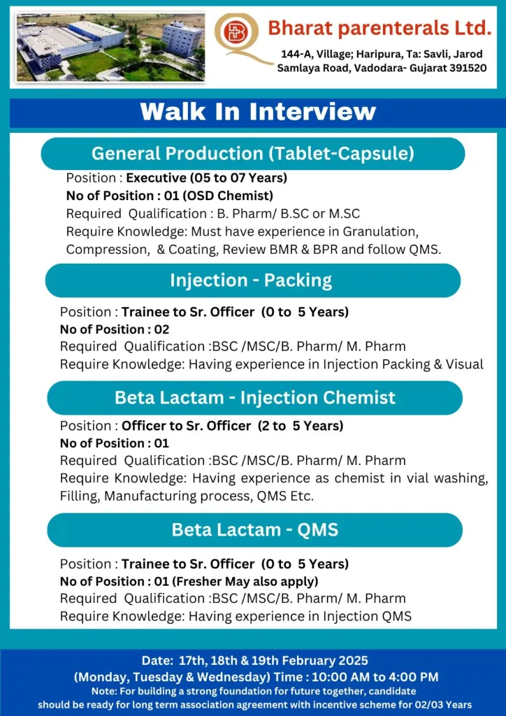 - Department: Production / Packing / Beta Lactam / Personnel Assistant / Purchase / HR