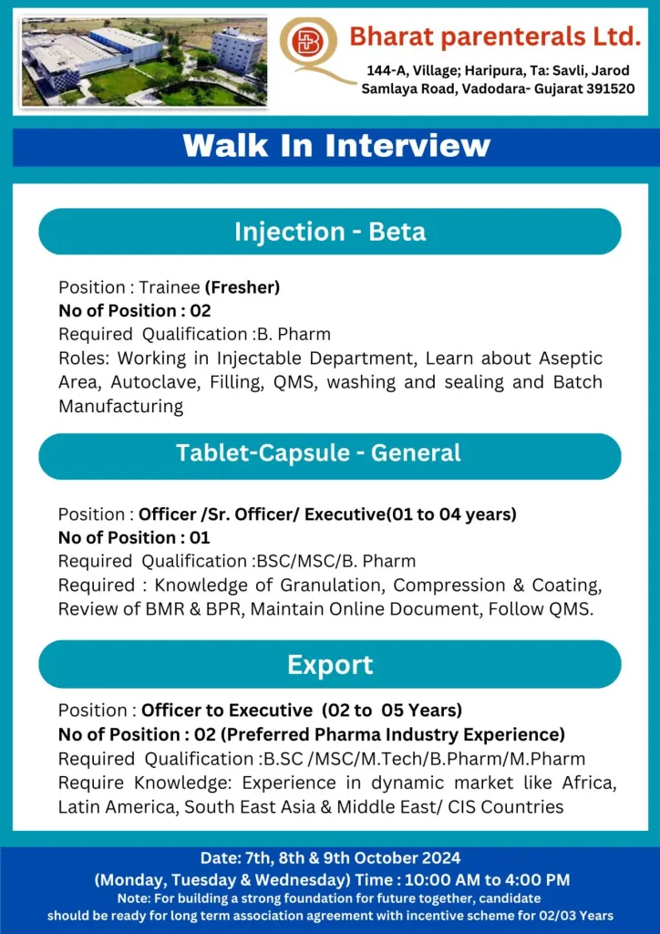 • Qualification: B.Sc, M.Sc, B.Pharm, M.Pharm, M.Tech, ITI, Diploma, Any Graduates
