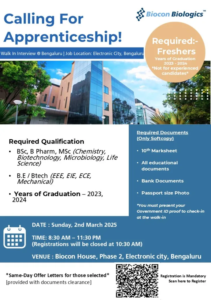 - VENUE: Biocon House, Phase 2, Electronic city, Bengaluru