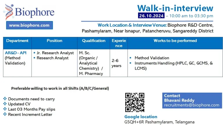 - Share Your CV’s to : recruitments@biophore.com