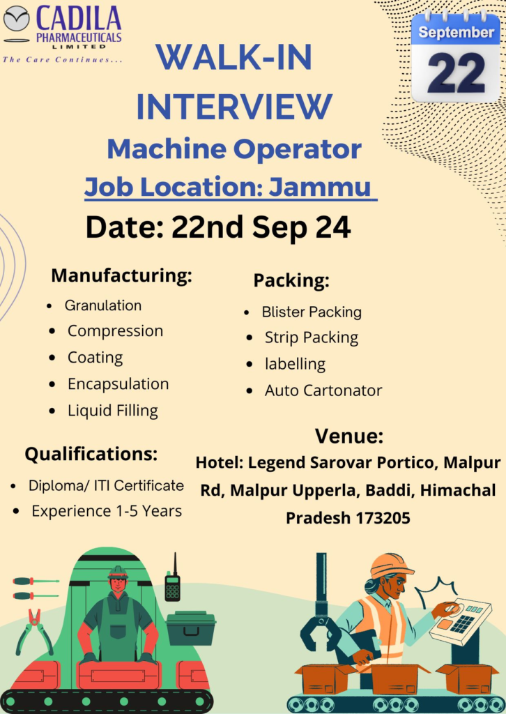- Interview Venue : Legend Sarovar Portico Malpur road Upprla Baddi Himachal Pradesh