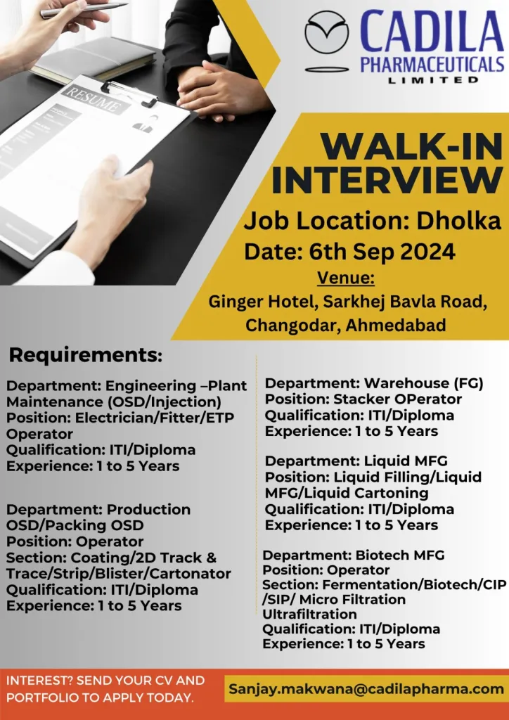 SEND YOUR CV AND PORTFOLIO TO APPLY TODAY. Sanjay.makwana@cadilapharma.com