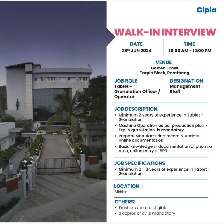 - Location – Cipla Ltd, Sikkim