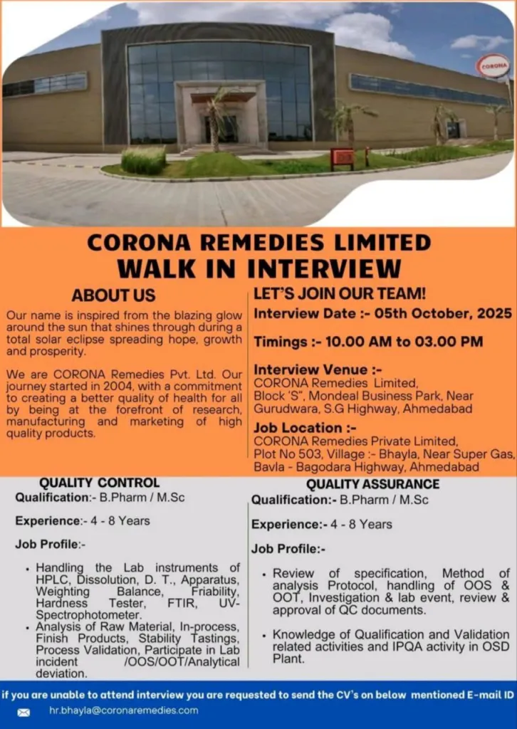 VENUE: Corona Remedies Ltd,Plot No 503,Village Bhayla,Near Super Gas,Bavla-Bagodara Highway,Taluko Bavla,Ahmedabad