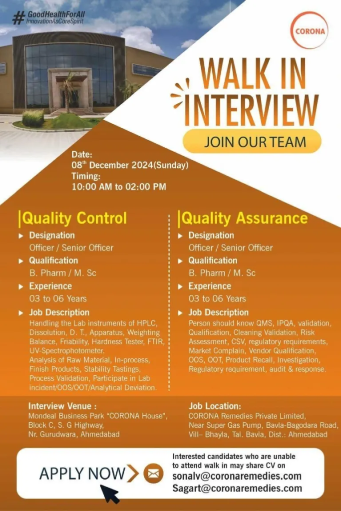 All those candidates share their CV on sagart@coronaremedies.com / sonalv@coronaremedies.com
