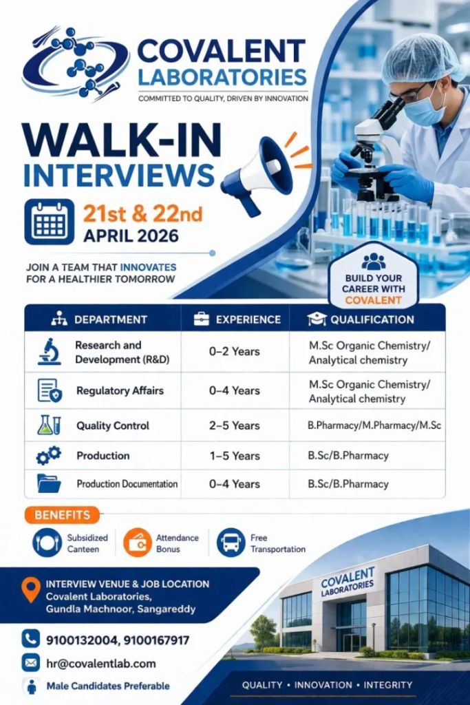 | Venue | Covalent Laboratories, Gundla Machnoor, Sangareddy |