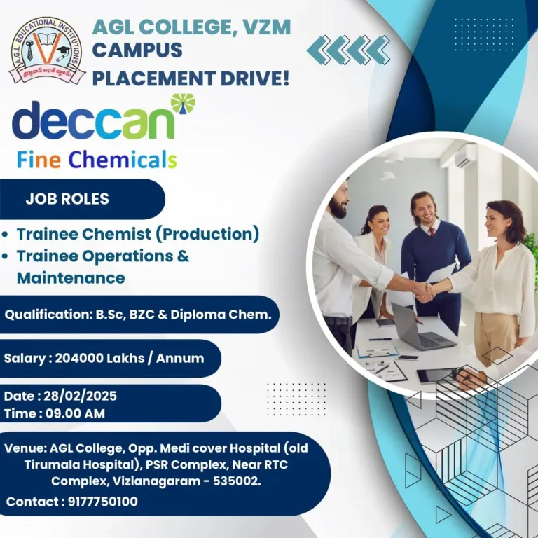 - Venue: AGL College, Opp. Medi cover Hospital (old Tirumala Hospital), PSR Complex, Near RTC Complex, Vizianagaram – 535002.