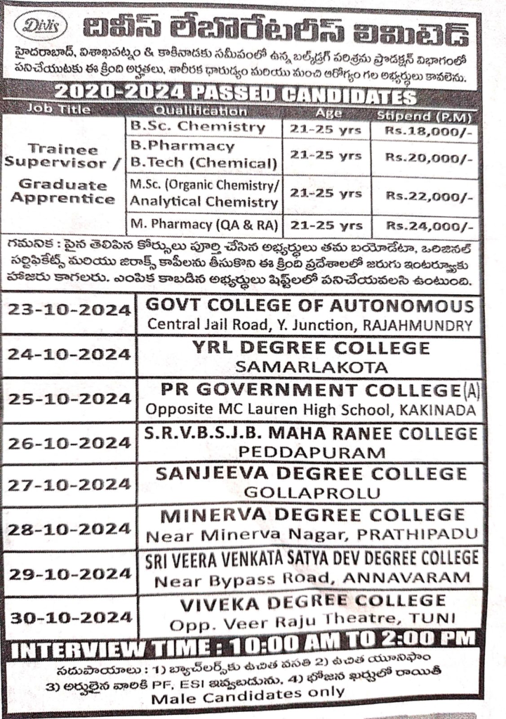 QUALIFICATIONS:B.SC,M.SC,B.PHARM,M.PHARM,B.TECH