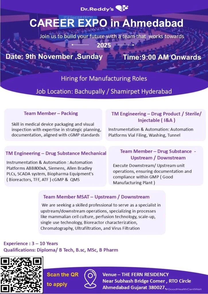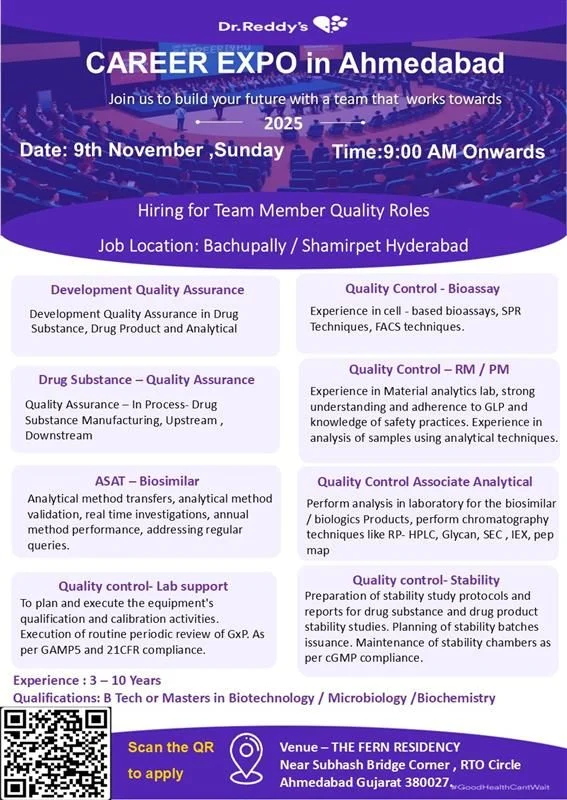 Dr. Reddy’s maintains a work environment, free from discrimination, and is an equal opportunity employer. The company is committed to equal employment opportuninty and employs all qualified persons without regard to race, colour, religion, national origin, sex, age, disability status, genetics, sexual orientation, gender identity or expression, marital status, citizenship or any other characteristic or classification protected by the applicable law(s) of the countries we operate in. We apply these principles in all aspects of employment, including recruitment, hiring, placement, promotion, termination, lay off, transfer, leaves of absence, training and compensation. If you feel you have not been treated in accordance with these principles, you should contact your local Human Resources Department. The company assures all employees that no individual filing a complaint will be discriminated against, as a result of their complaint. For more details,