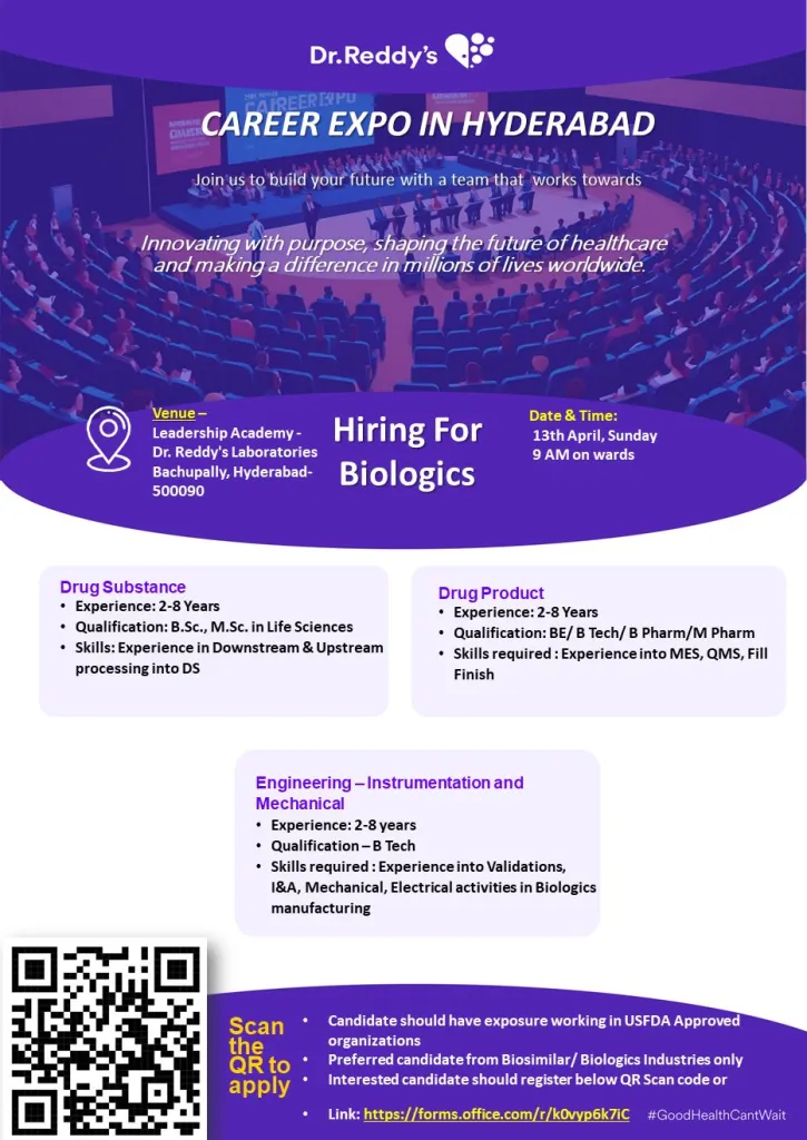 We are pleased to announce an exciting opportunity at Dr. Reddy’s Laboratories. We are actively seeking talented individuals who are passionate about the pharmaceutical industry and excel in dynamic environments. If you possess these qualities, we encourage you to explore our open positions and take the next step in your career with us. Join our team and become a part of our innovative and driven workforce.