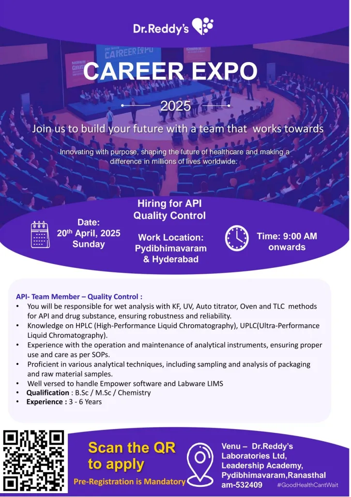 - Venue: Dr. Reddy’s Laboratories Ltd, Leadership Academy, Pydibhimavaram, Ranasthalam-532409
