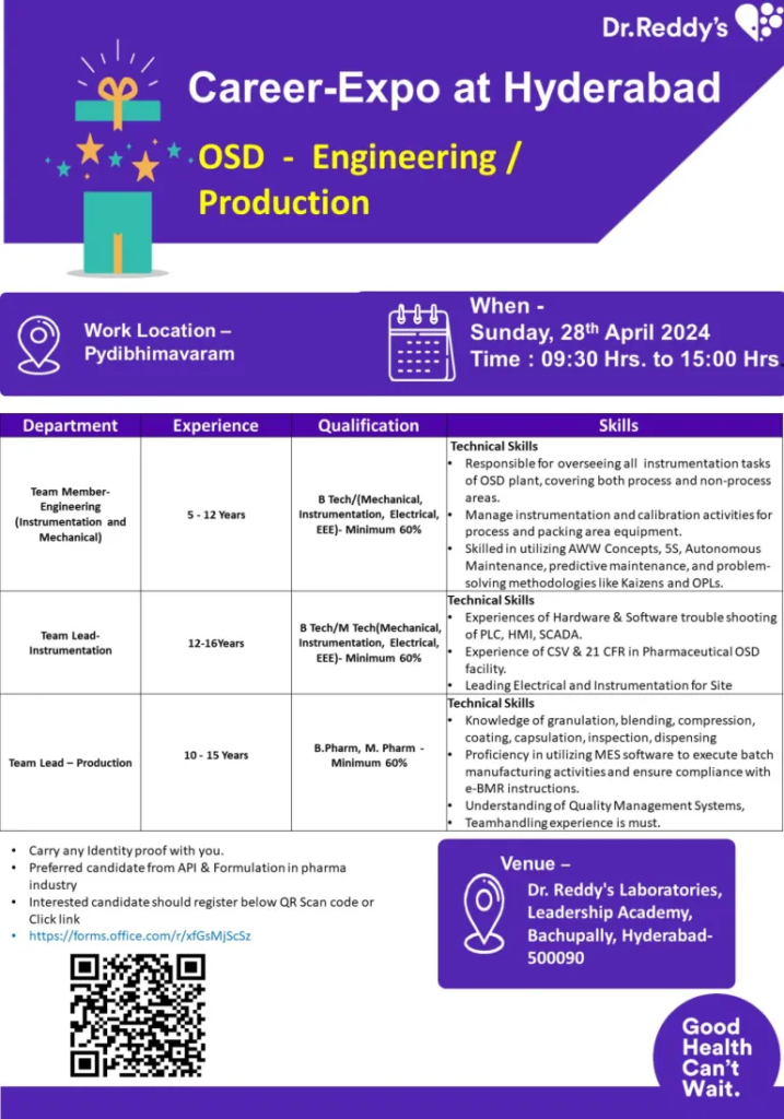- Venue: Dr. Reddy’s Laboratories, Leadership Academy, Bachupally, Hyderabad- 500090