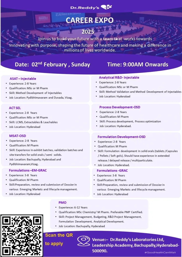 - Venue:- Dr.Reddy’s Laboratories Ltd, Leadership Academy, Bachupally, Hyderabad-500090.