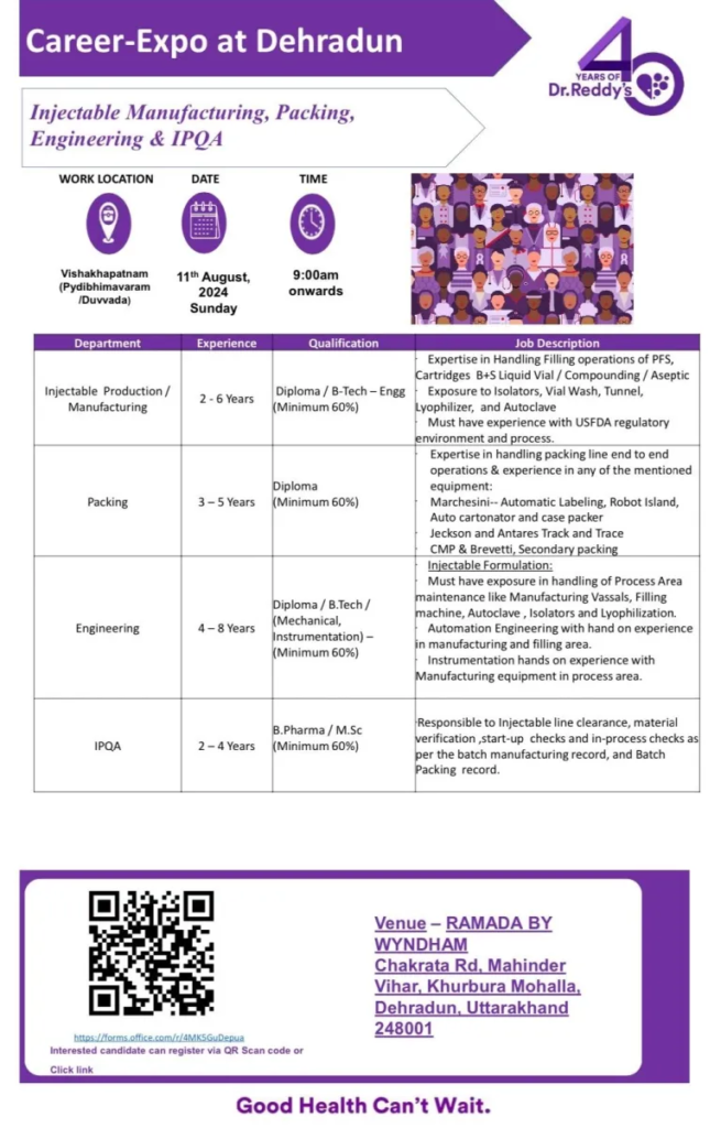 - Department: Injectables Production / Manufacturing, Packing, IPQA, Engineering