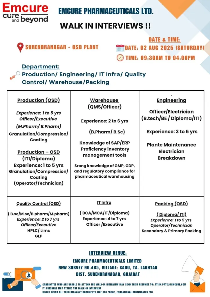 VENUE:: Emcure Pharmaceuticals Ltd New Survey No 485,Kadu,Lakhtar,Gujarat