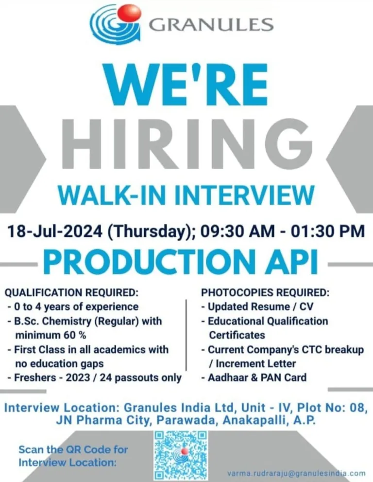 • Venue : Granules India Ltd, Unit – IV, Plot No: 08, JN Pharma City, Parawada, Anakapalli, A.P.