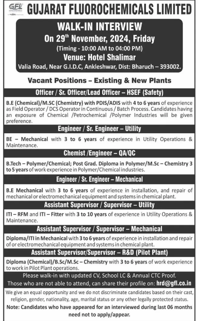 - Those who are not able to attend, can share their profile on: hrd@gfl.co.in