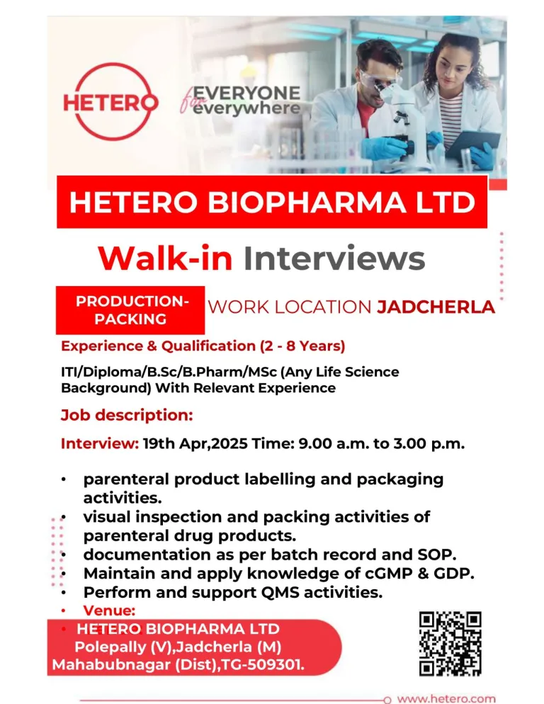 - WORK LOCATION: Hetero Biopharma, JADCHERLA