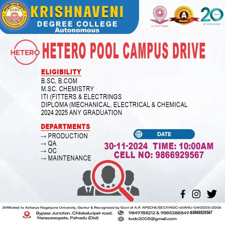 • Venue: Krishnaveni Degree College, Bypass Junction. Chilakaluripet road. Narasaraopeta. Palnadu (Dist)