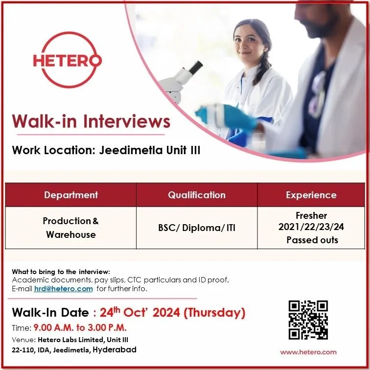 - Venue: Hetero Labs Limited, Unit III 22-110, IDA, Jeedimetla, Hyderabad.