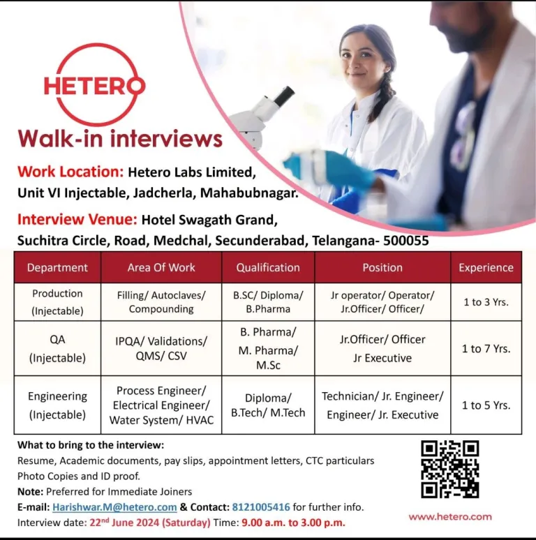 • Qualification: B.Sc, M.Sc, B.Pharm, M.Pharm, Diploma, B.Tech, M.Tech
