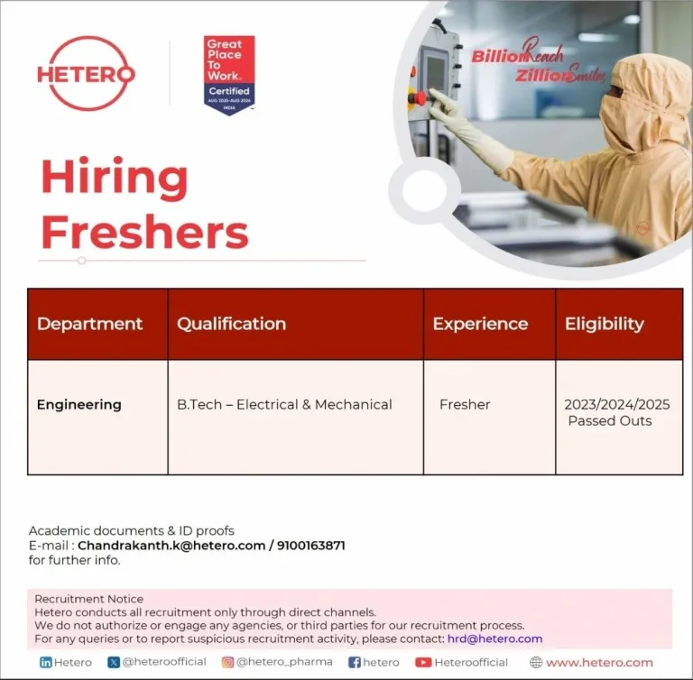 - For any queries or to report suspicious recruitment activity, please contact: hrd@hetero.com