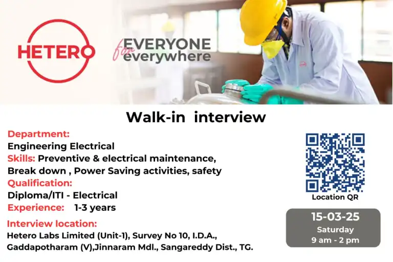- Job Location: Hetero Labs Ltd., Unit-1, Hyderabad