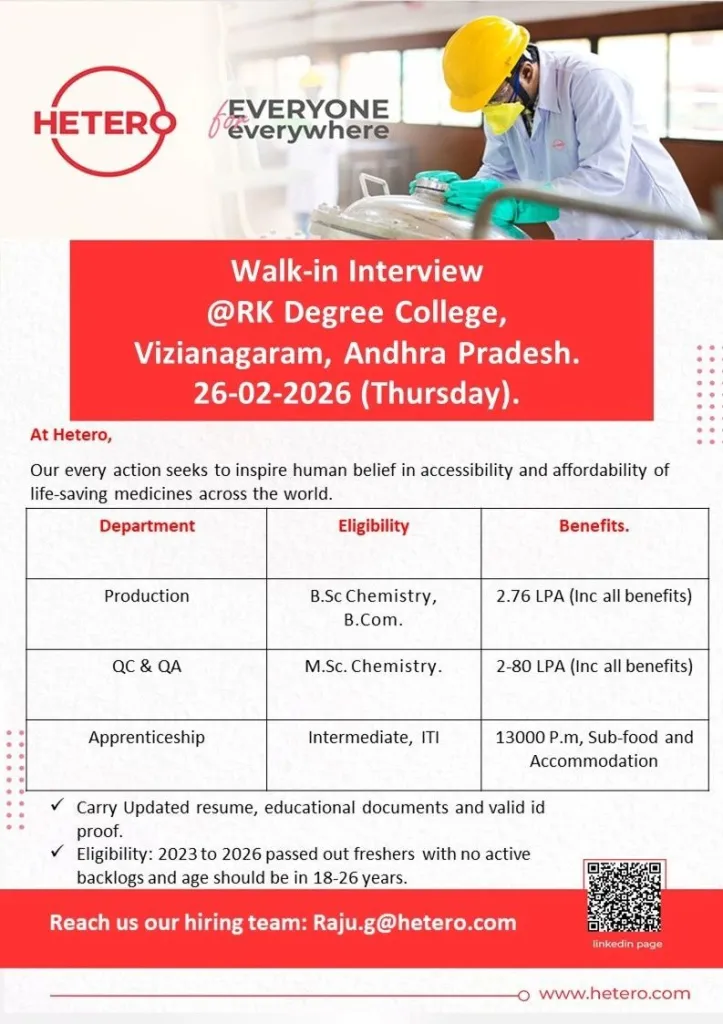 For inquiries, reach out to our hiring team at Raju@Hetero.com or visit our website at www.Hetero.com.