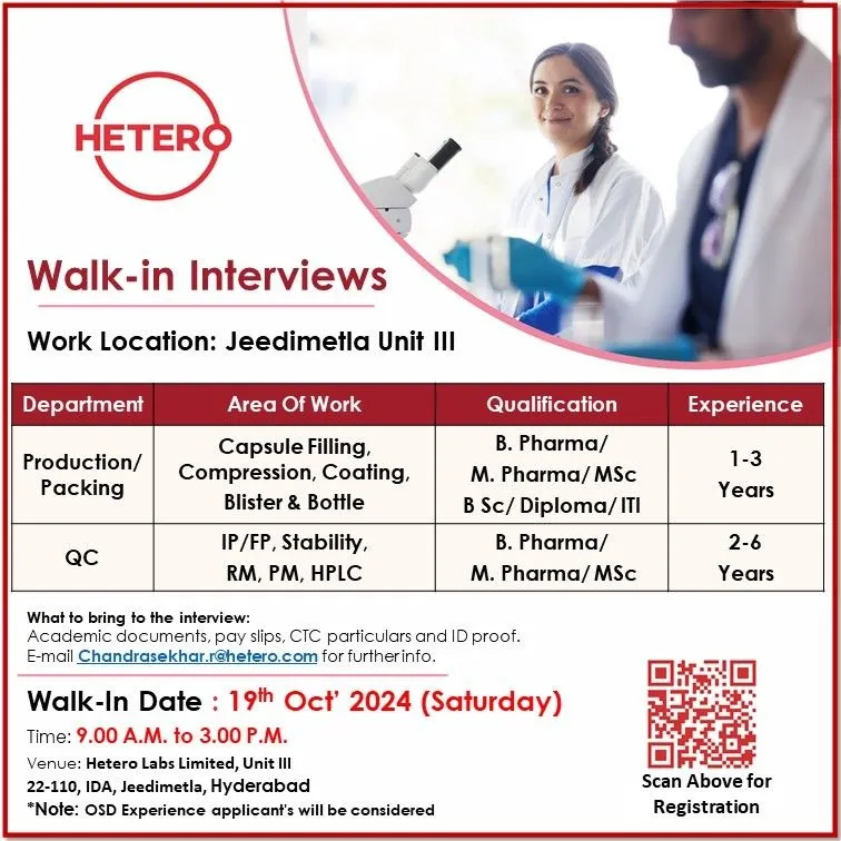 - Venue: Hetero Labs Limited, Unit III 22-110, IDA, Jeedimetla, Hyderabad.