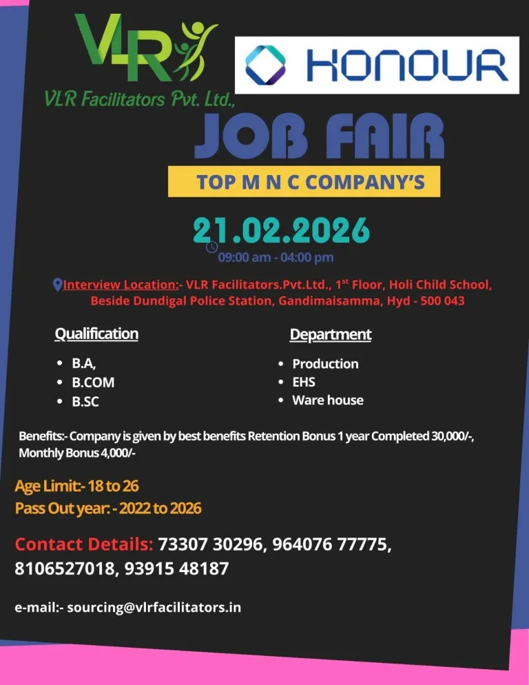 - Venue: VLR Facilitators Pvt. Ltd., 1ª Floor, Holi Child School, Beside Dundigal Police Station, Gandimaisamma, Hyd-500043