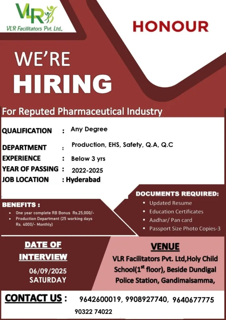 - VENUE: VLR Facilitators Pvt. Ltd., Holy Child School (1st Floor), Beside Dundigal Police Station, GANDIMAISAMMA, HYDERABAD