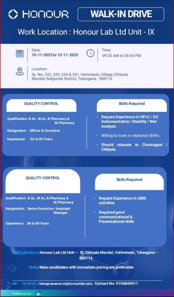 Interested candidates may share their resumes at: recruitment@honourlab.com