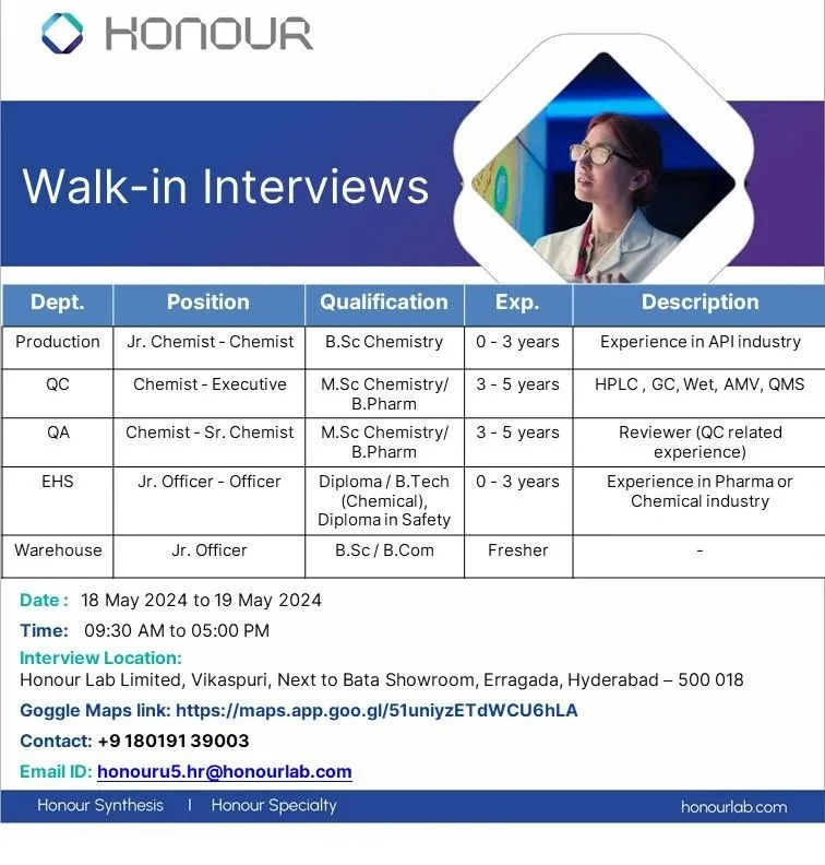 - Venue: Honour Lab Limited, Vikaspuri, Next to Bata Showroom, Erragadda, Hyderabad