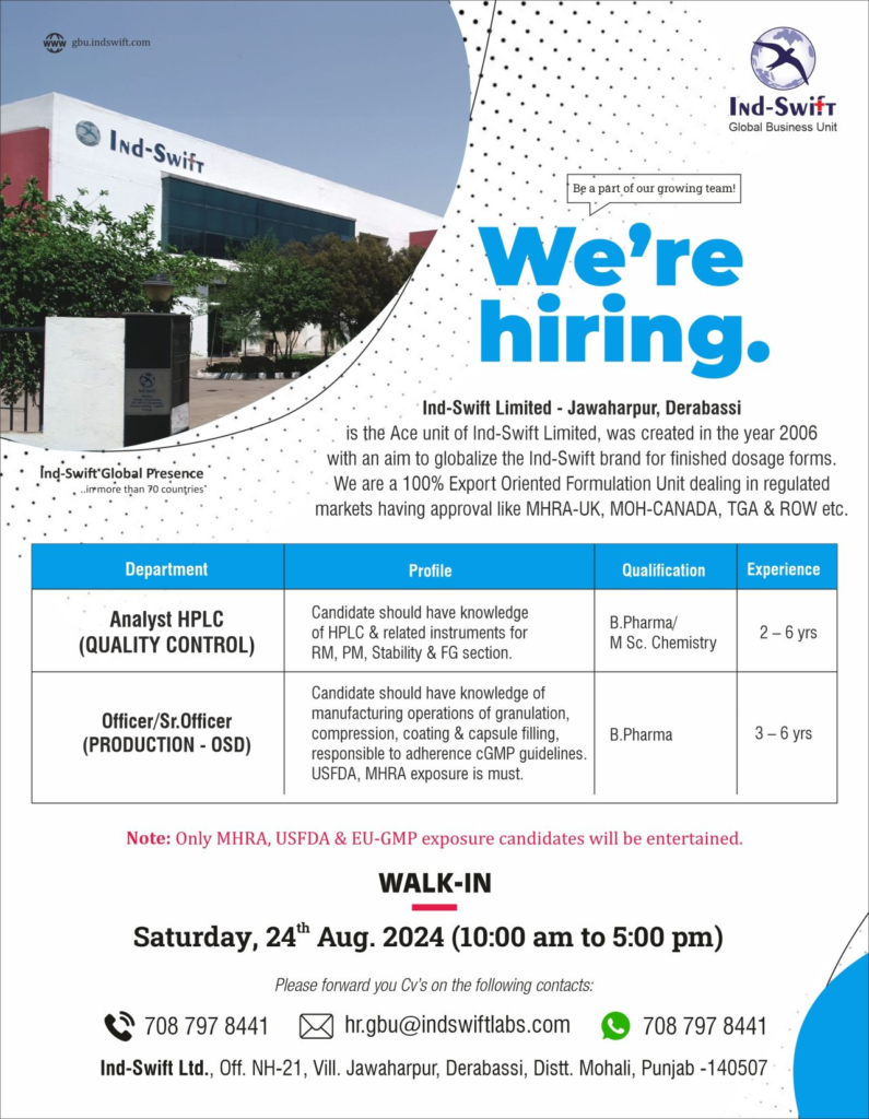 - Location: Ind-Swift Ltd., Off NH 21, Village Jawaharpur, Derabassi, Punjab