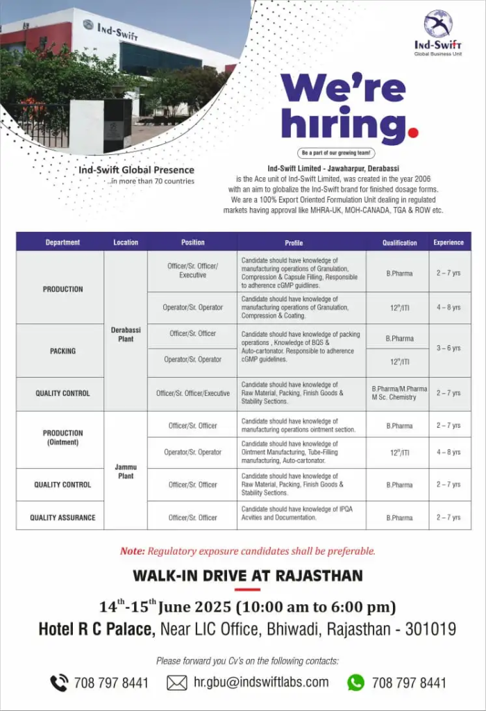 - Qualification: 12th/ITI/Msc/Bpharm/Mpharm