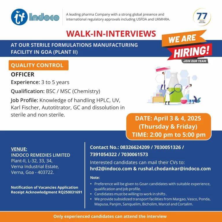 - Preference will be given to Goan candidates with suitable experience, qualification and job profile.